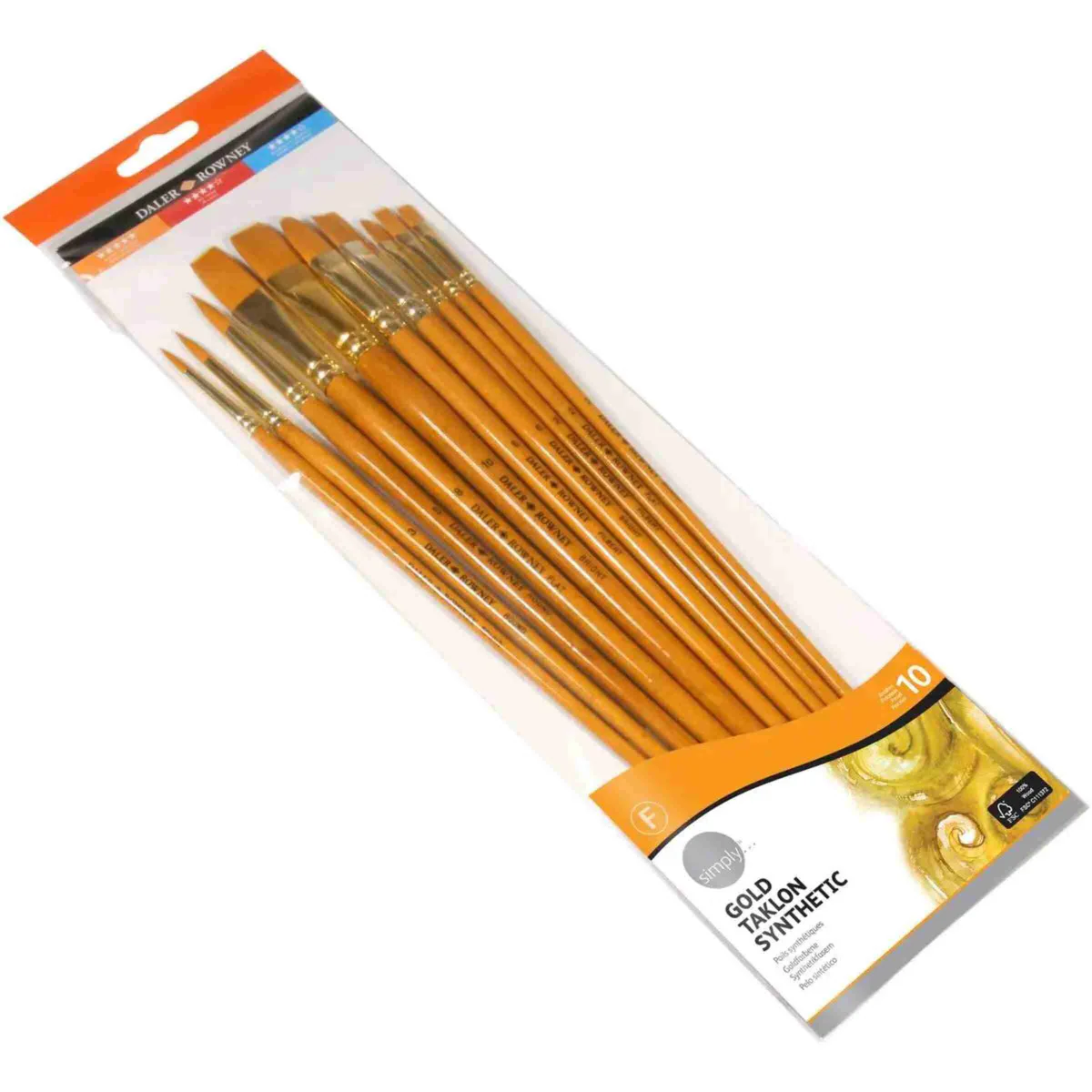 Daler Rowney Simply Gold Taklon Synthetic Hair Brush Set Of 10 Pcs