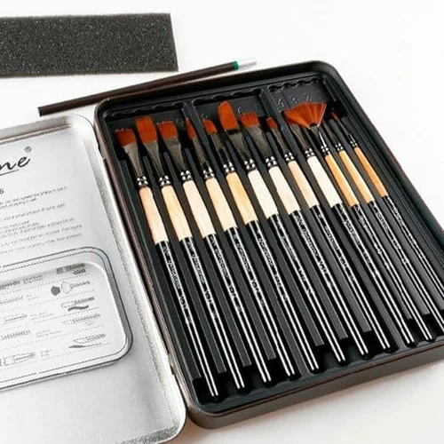 - 12 professional-grade mixed brushes in one tin box