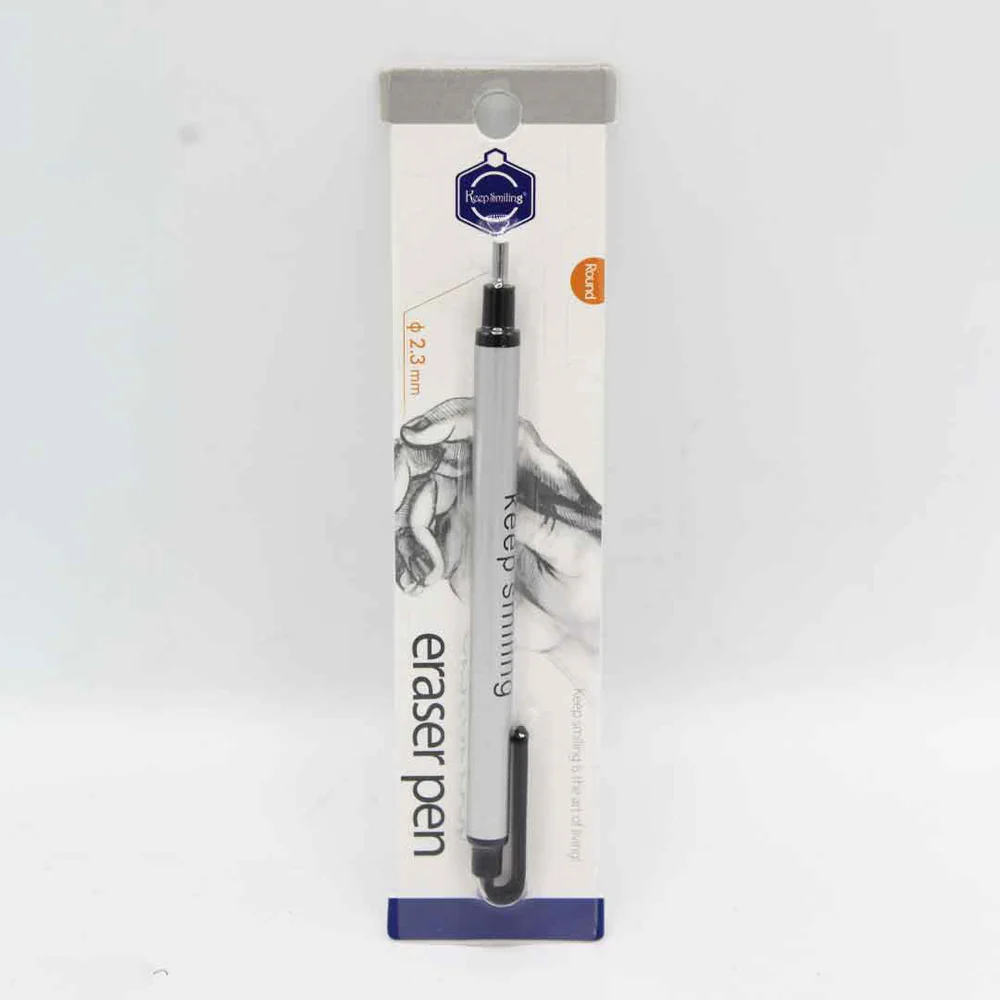 The Keep Smiling Eraser Pen 2.3mm is a must-have tool for any artist, student, or professional. Its precise 2.3mm tip allows for detailed erasing, making it perfect for correcting fine lines and intricate details. The sleek, pen-like design provides comfort and control, ensuring effortless maneuvering. Whether you’re working on sketches, blueprints, or handwritten notes, this eraser pen ensures clean and smudge-free results. Compact and portable, it’s easy to carry in your pencil case or bag, ready to tackle any erasing needs with precision and ease.