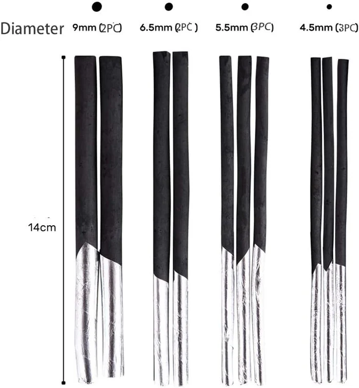 - Set of 10 high-quality willow charcoal sticks.