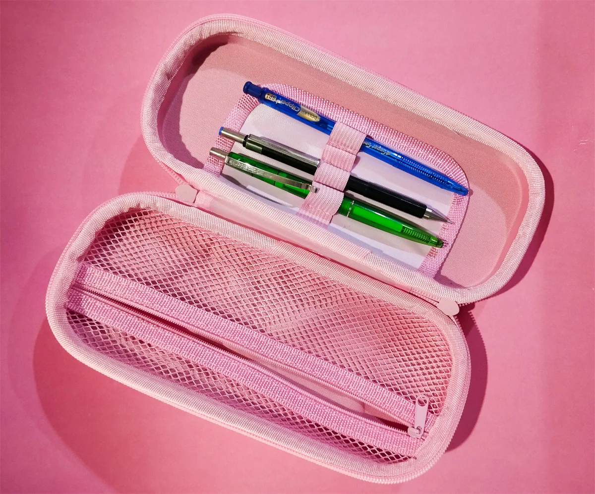 • Spacious interior for storing pencils, pens, erasers, and more.