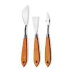 The Stainless Steel Palette Knife Pack of 3 is an essential set for artists, and painters. Made from high-quality stainless steel, these palette knives are durable, rust-resistant, and easy to clean, ensuring long-lasting performance and reliability. With three different blade shapes and sizes included in the pack, artists have the versatility to create a variety of textures and effects in their artwork. Whether you’re mixing colors, applying paint to canvas, or sculpting with modeling paste, these palette knives offer precision and control. Their ergonomic handles provide a comfortable grip, reducing hand fatigue during extended use.