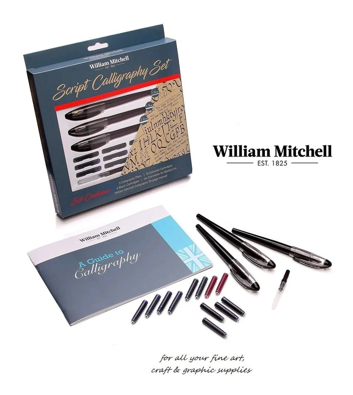 Master the art of beautiful writing with the William Mitchell Script Calligraphy Set (Arabic). This high-quality set is specifically designed for Arabic script, offering everything you need to create stunning calligraphic works. The set includes a selection of nibs crafted for precision and fluidity, along with a robust pen holder for comfortable use. Perfect for both beginners and experienced calligraphers, this set provides the tools necessary to explore and perfect the intricate details of Arabic calligraphy. Elevate your writing projects with this exceptional calligraphy set.